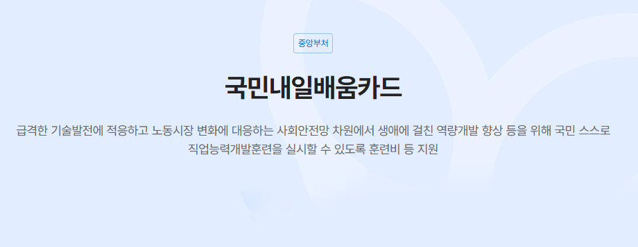 국민내일배움카드는 고용노동부가 지원하는 직업능력개발 훈련 지원 제도로, 직무 역량을 높이고 취업 및 전직을 돕기 위해 만들어졌습니다.