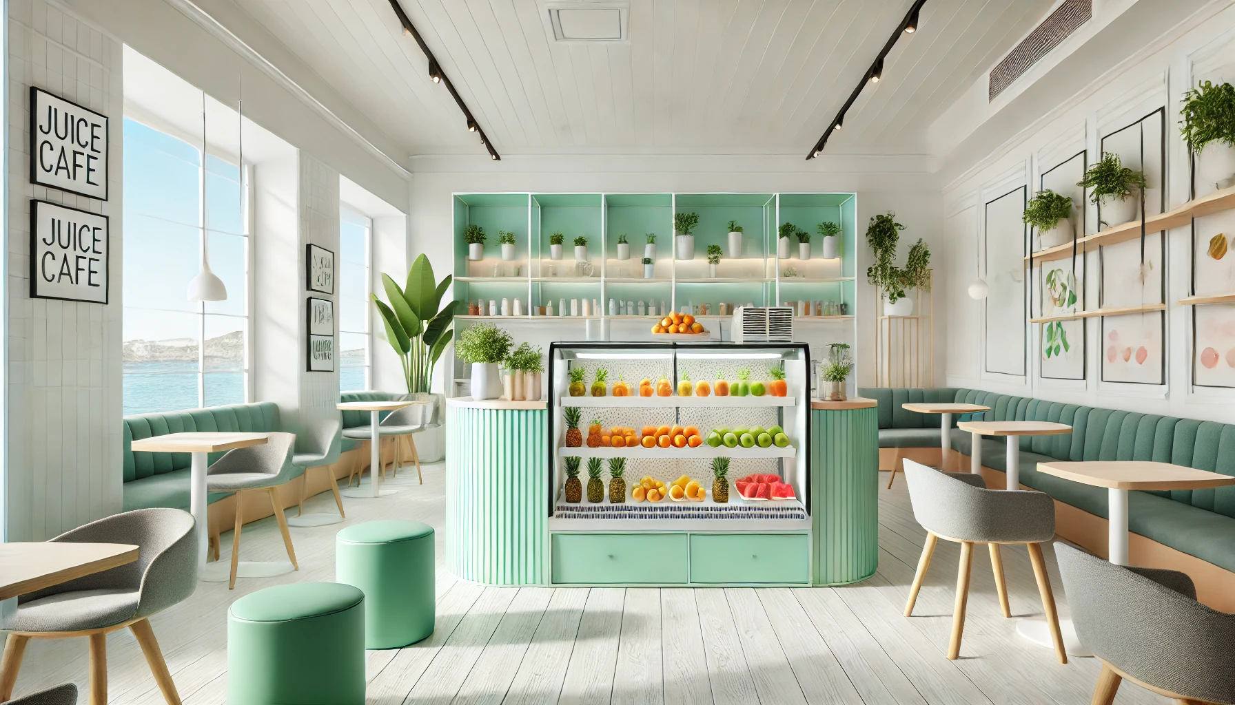 사례: 한 주스 카페는 벽면에 밝은 민트색을 사용하고, 투명한 유리 테이블과 밝은 조명을 활용해 상큼한 느낌을 강조했습니다.