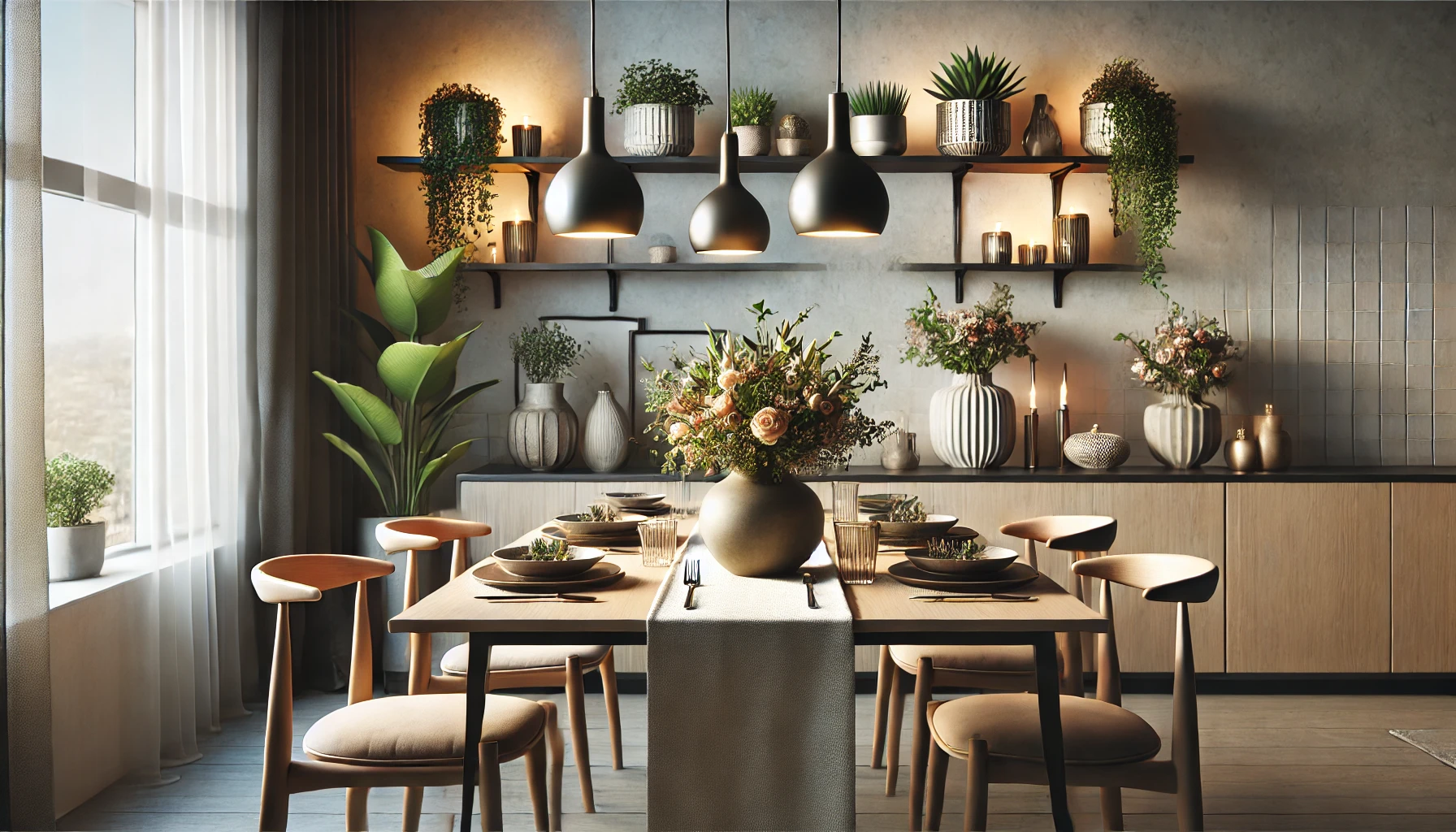 테이블 장식: 작은 캔들 홀더, 꽃병, 책 등을 활용해 테이블이나 선반 위에 장식하면 공간이 더욱 풍부해 보입니다.