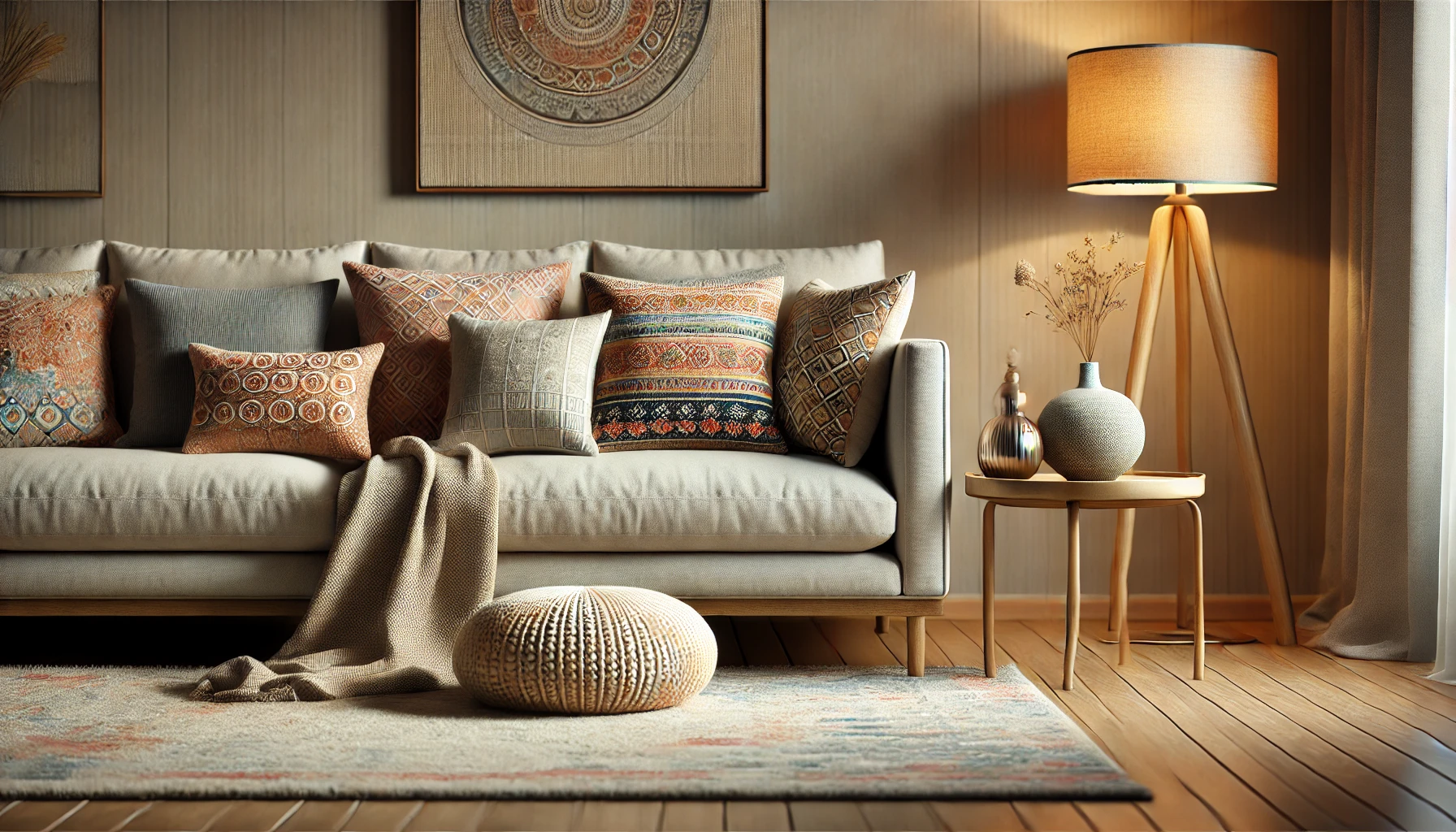 사례: 한 아파트 거주자는 패턴 있는 러그와 계절감 있는 쿠션으로 거실을 꾸며, 소파와 공간 전체가 더욱 생동감 있게 느껴지도록 했습니다.