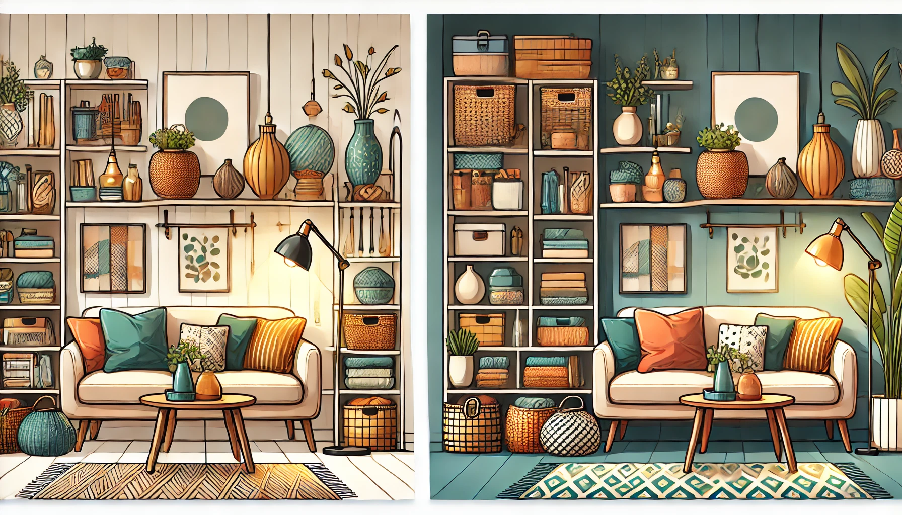 쿠션과 러그: 다양한 패턴과 색상의 쿠션이나 러그를 활용해 공간에 따뜻함과 개성을 더하세요. 이들은 계절별로 교체하기 쉬워 지속적으로 변화를 줄 수 있는 장점이 있습니다.