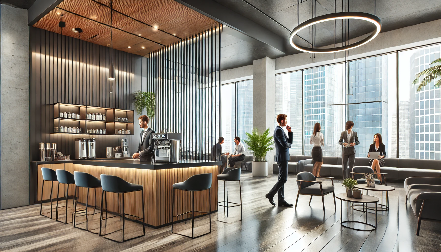카페와 같은 분위기의 휴게 공간을 만들면 직원들이 편안하게 커피 한 잔을 즐기며 재충전할 수 있습니다. 바리스타 바, 원목 테이블, 감성적인 조명을 활용하면 더욱 따뜻한 공간을 조성할 수 있습니다.